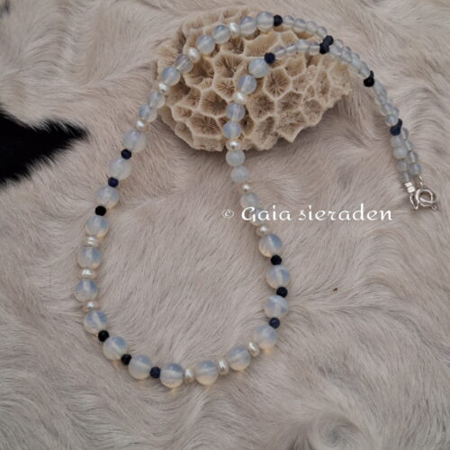 Ketting Opaliet met parel en saffier