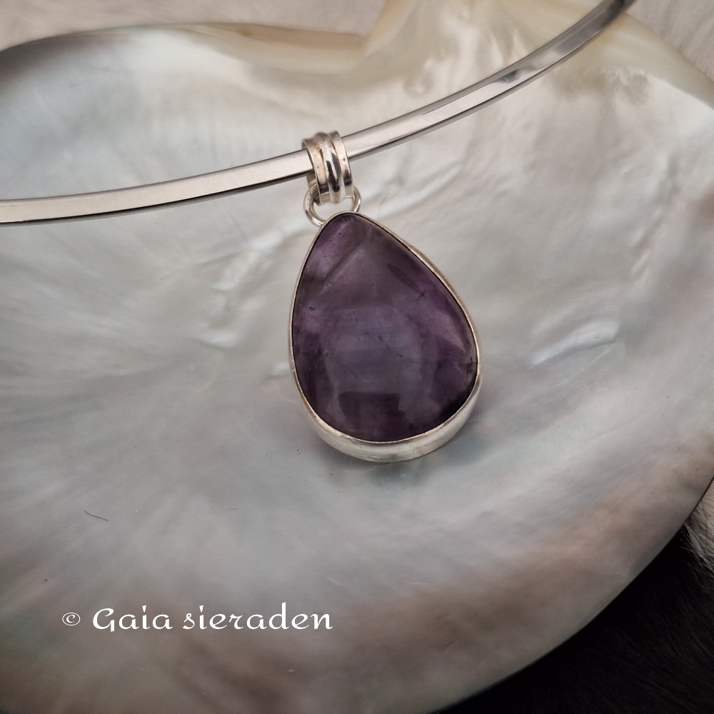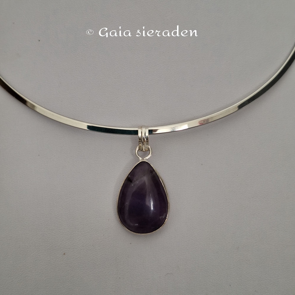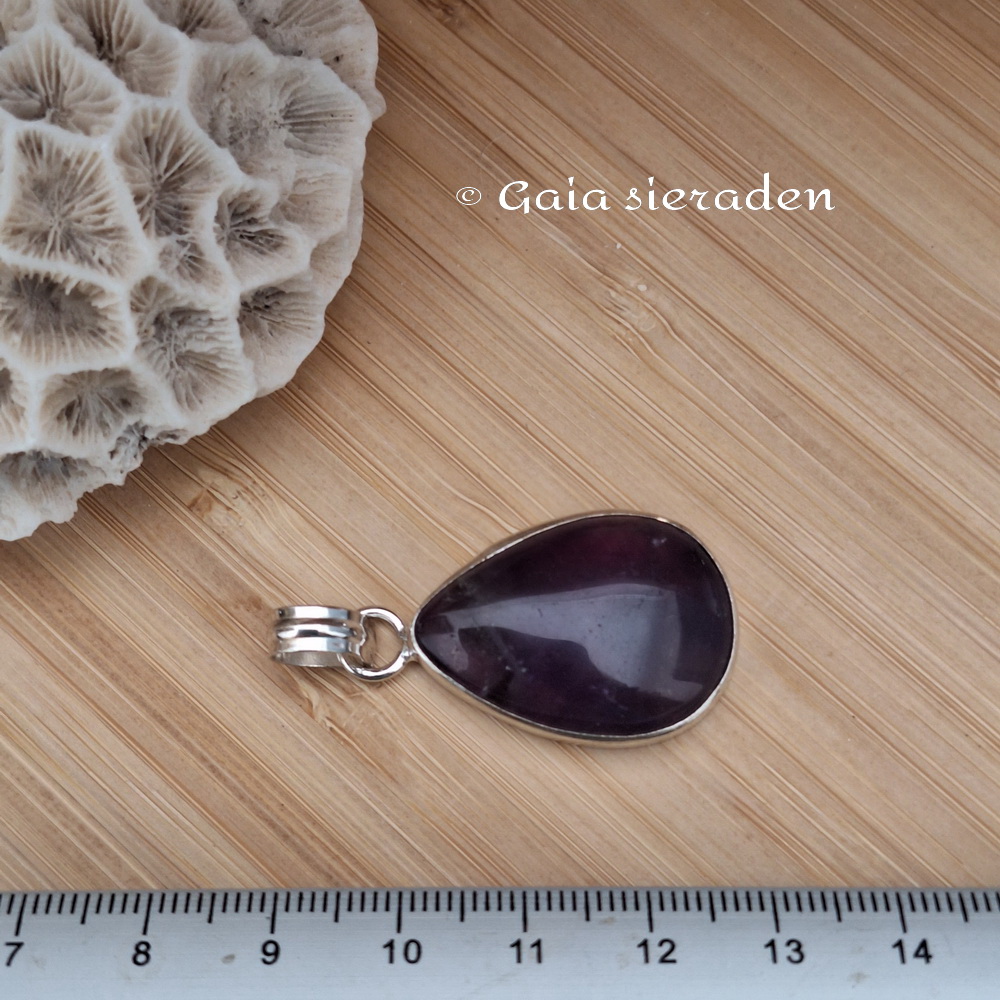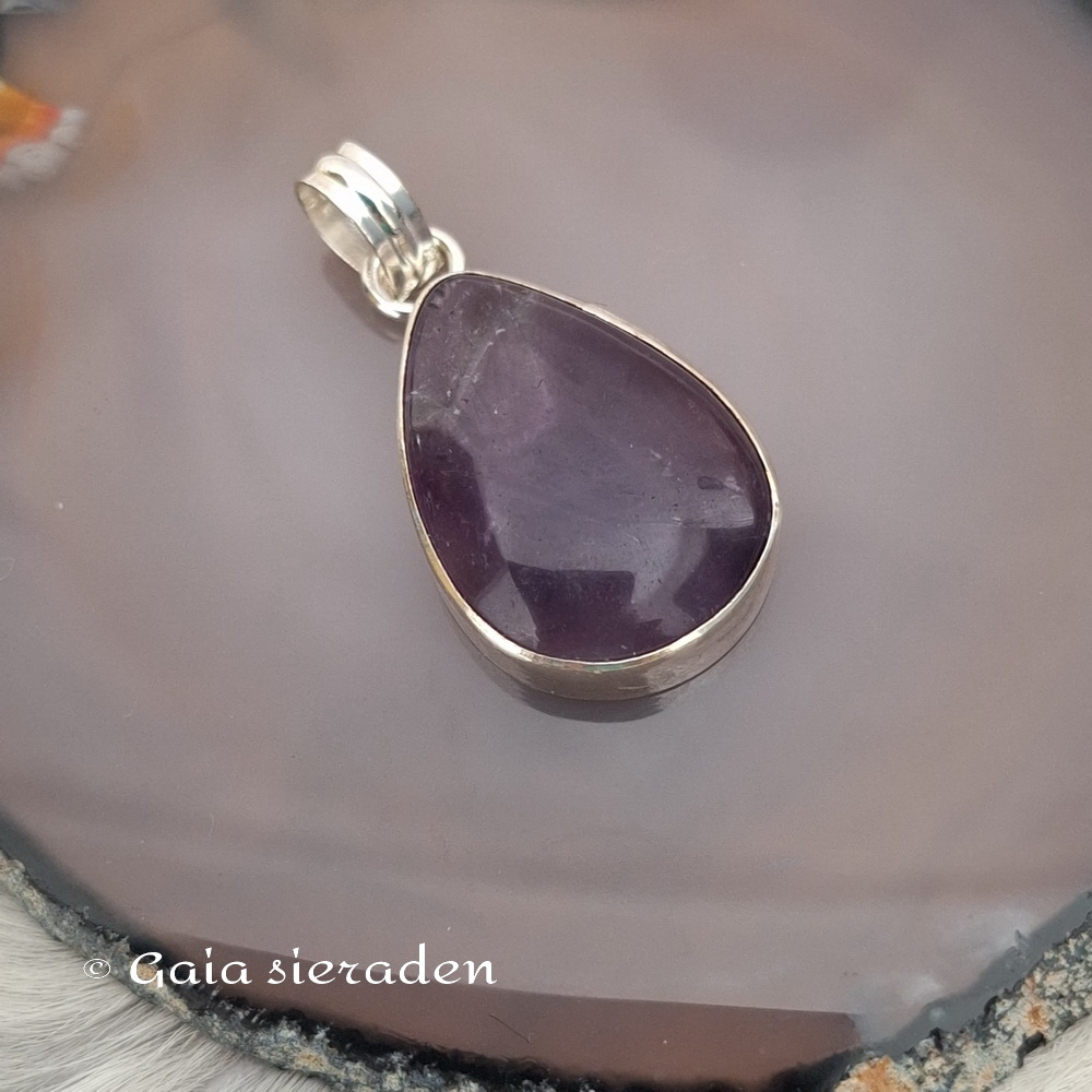 Amethist zilveren hanger druppel: Mooie hanger van donkere Amethist en 835 India zilver. Zonder ketting of spang. Afgewerkt met een zilveren hangoog.