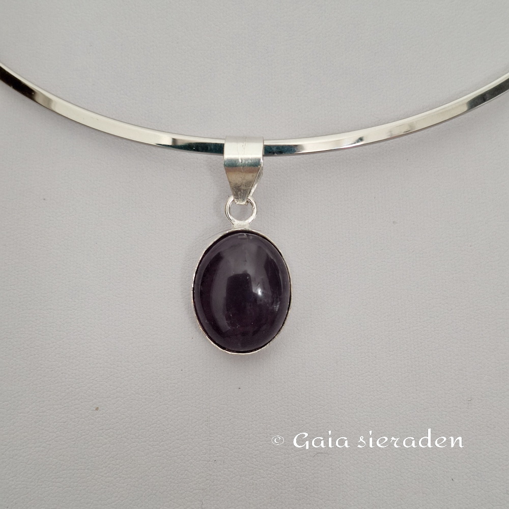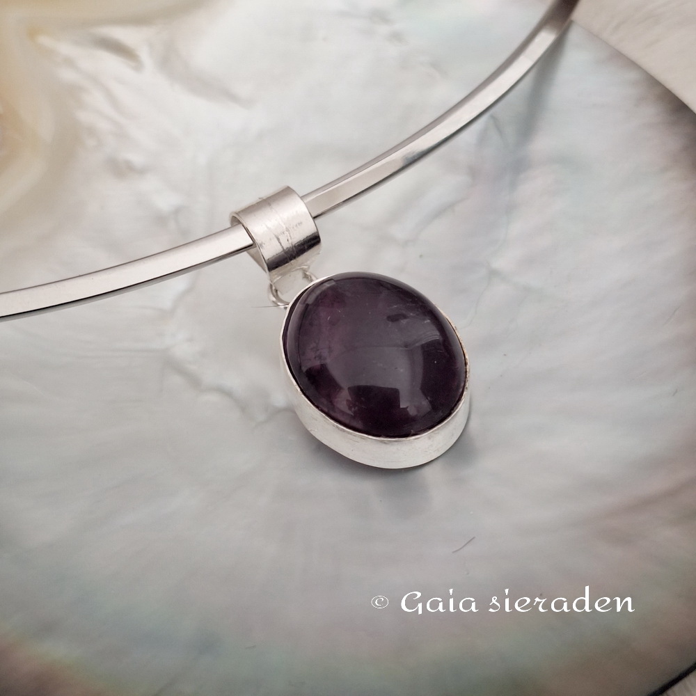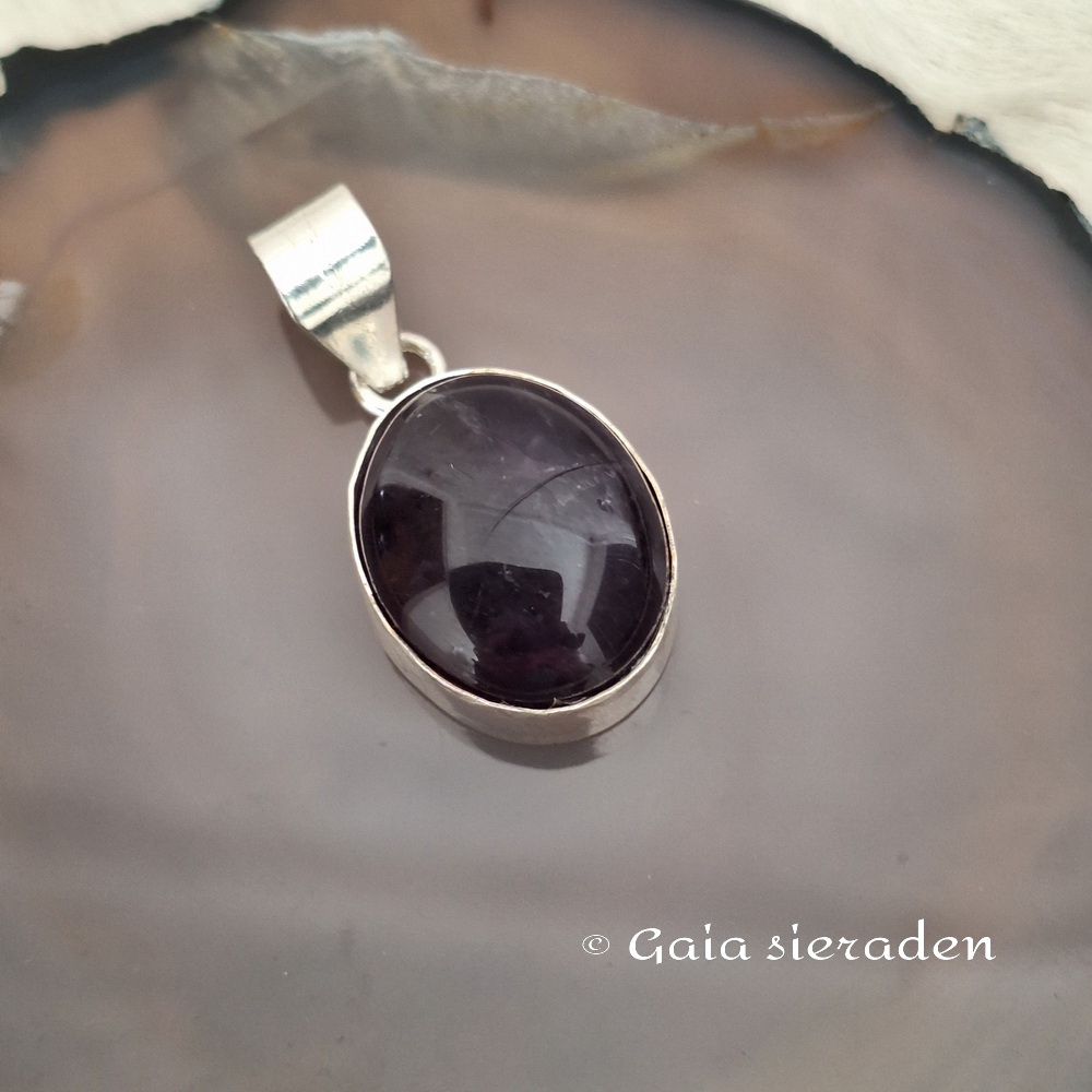 Amethist zilveren hanger Ovaal : Mooie hanger van donkere Amethist en 835 India zilver. Zonder ketting of spang. Afgewerkt met een zilveren hangoog.