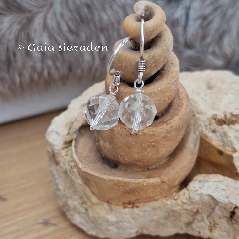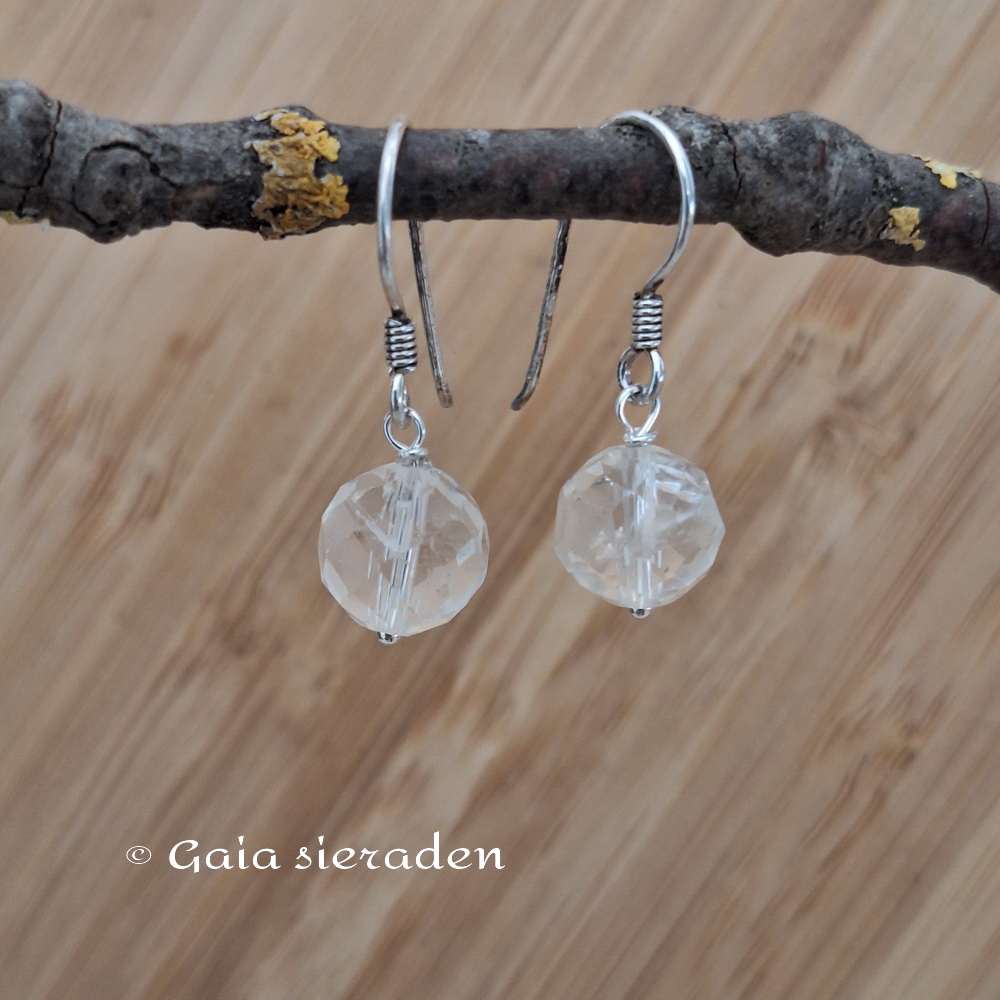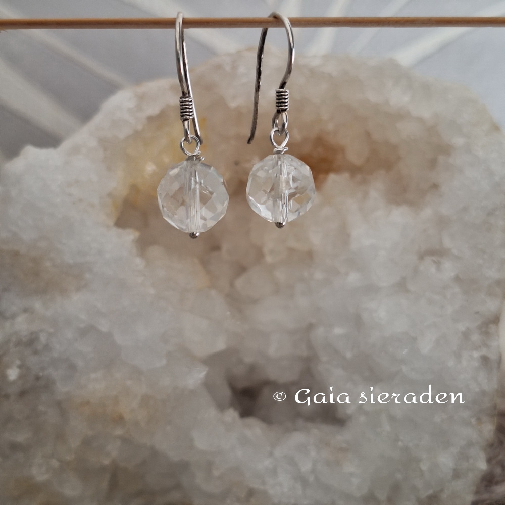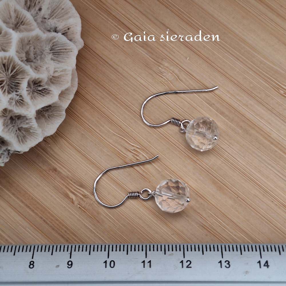 Bergkristal oorbellen facet bol: leuke oorbellen met heldere facet geslepen bollen Bergkristal aan een zilveren oorhaak.