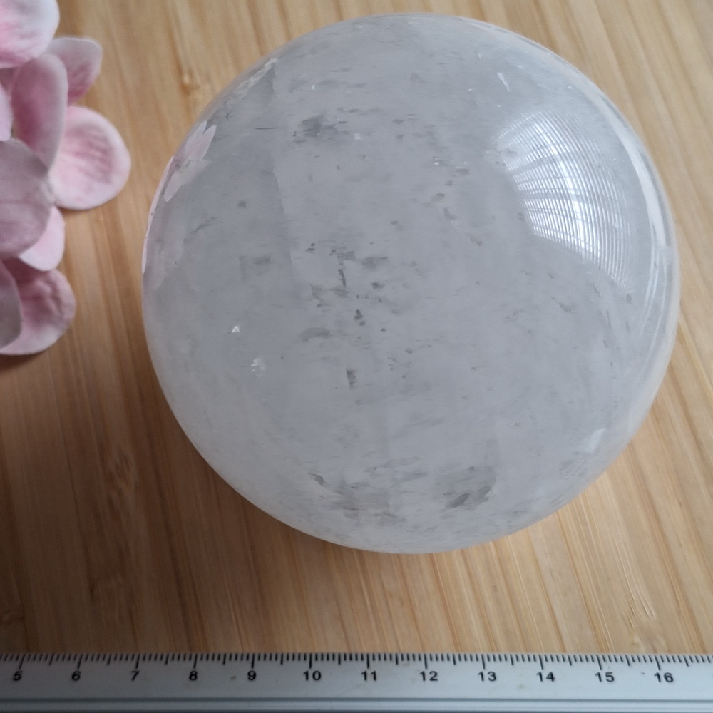 Calciet bol wit: mooie grote glanzend gepolijste witte Calciet bol.
