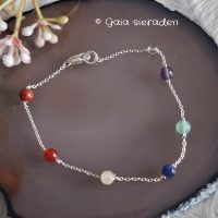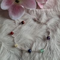 Chakra zilveren armband: minimalistisch zilveren armbandje geketteld met natuurlijke kraaltjes. Afgewerkt met een zilver veerslot.