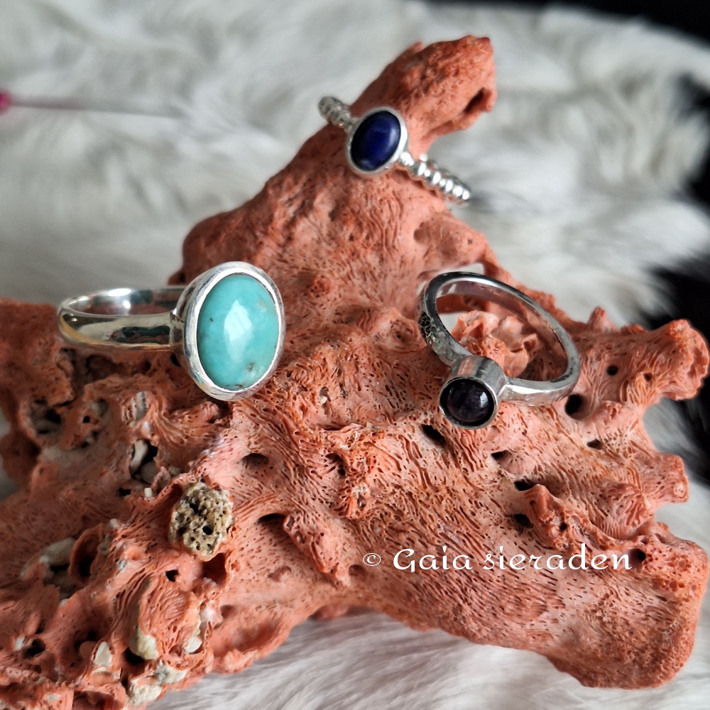 Leuke edelsteen zilveren ringen in verschillende maten en modellen.