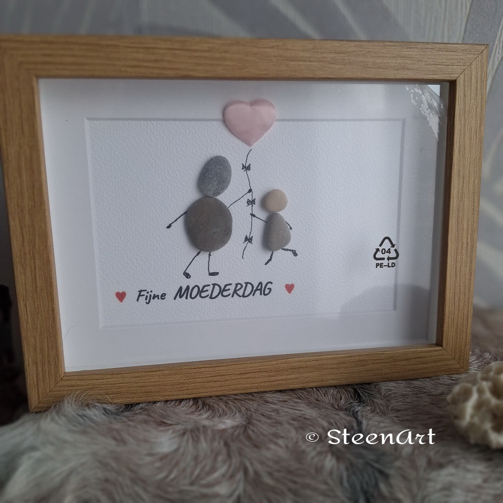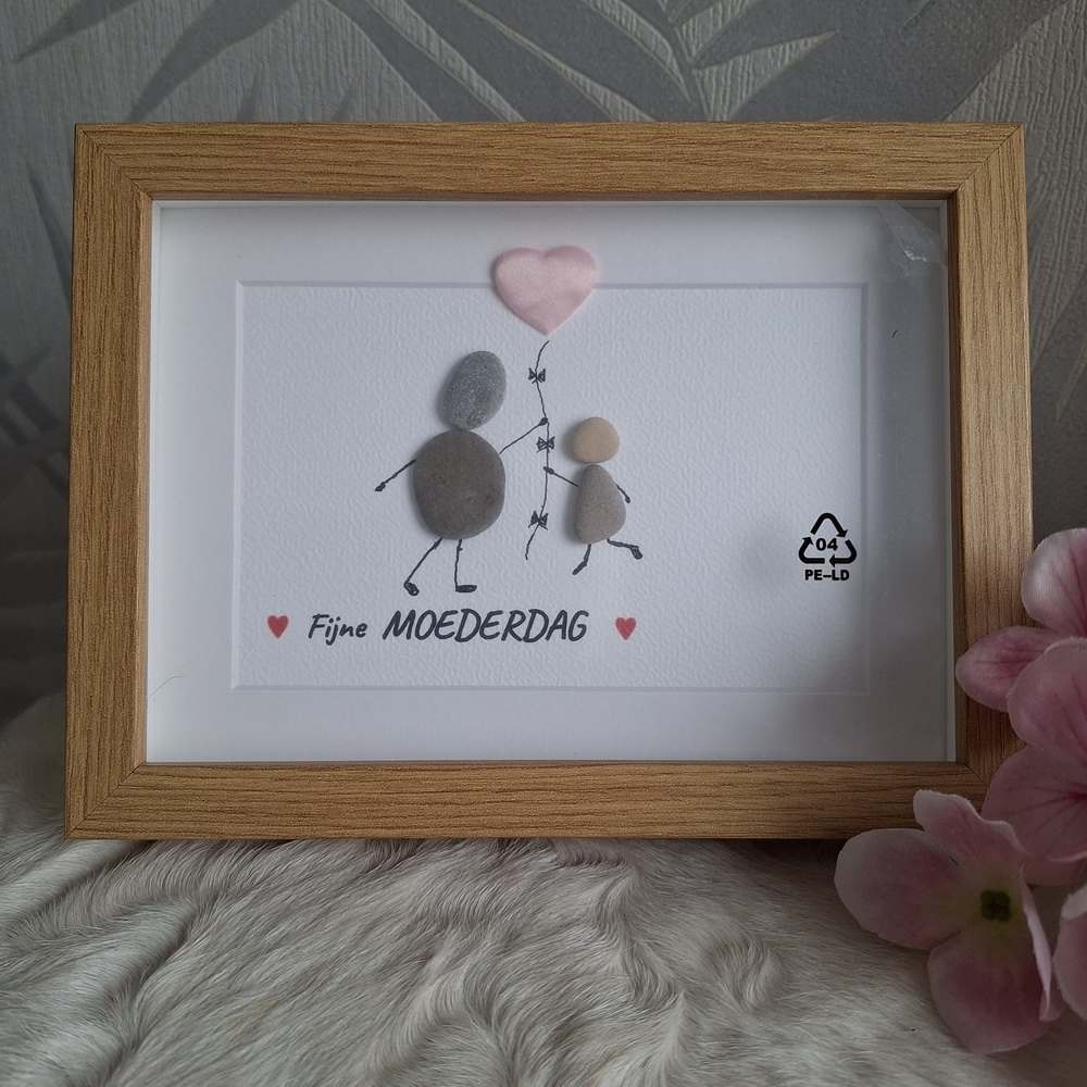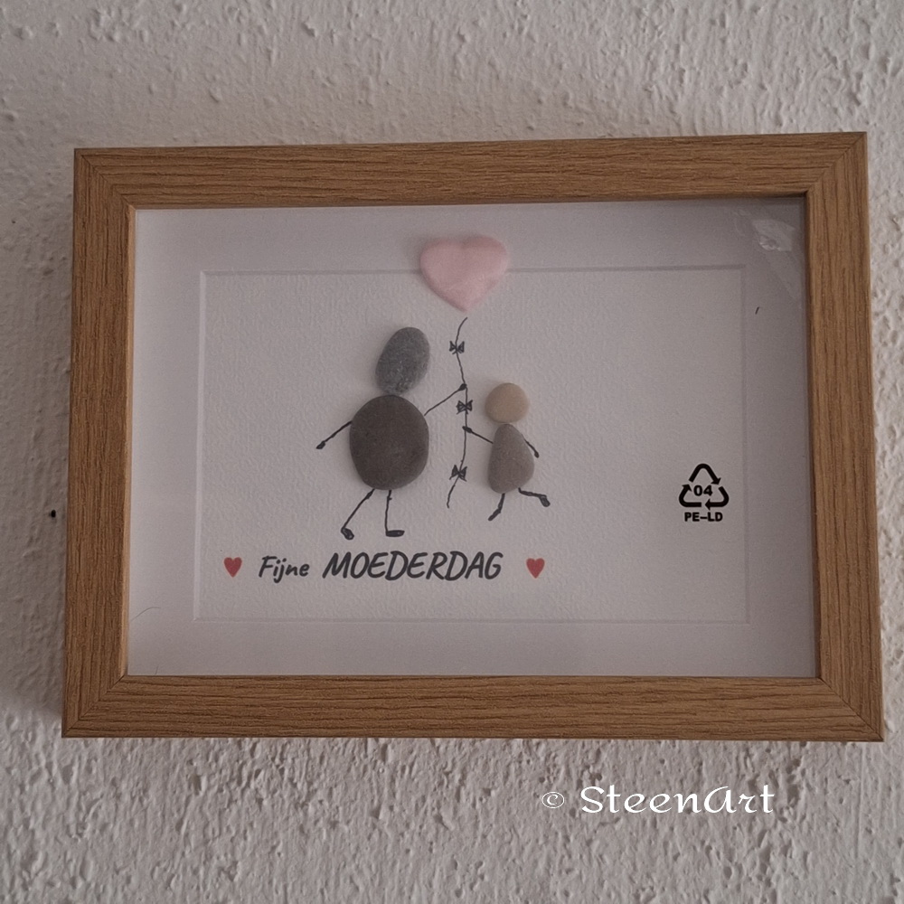 Fijne moederdag – SteenArt schilderijtje. Gemaakt met strand steentjes.