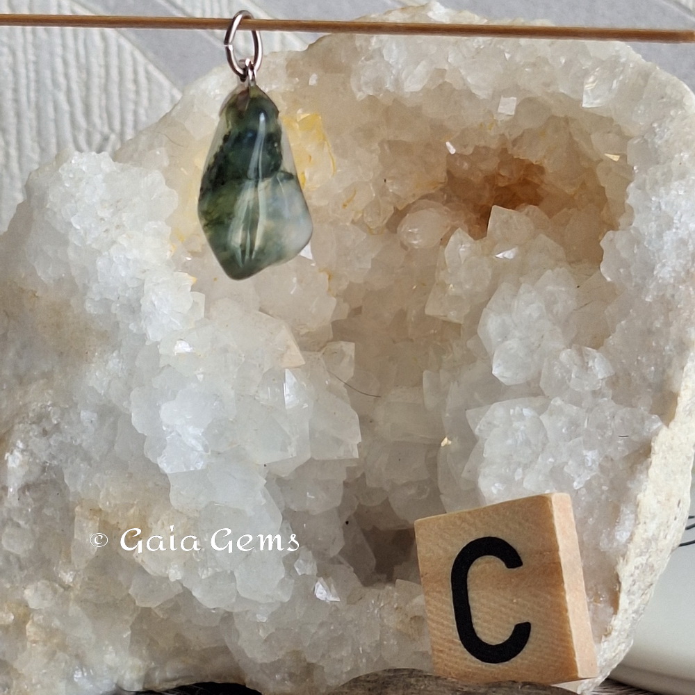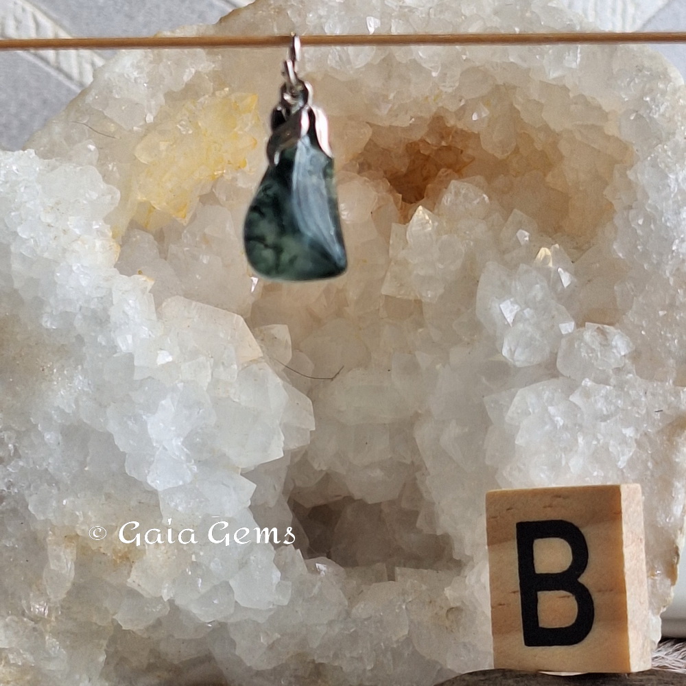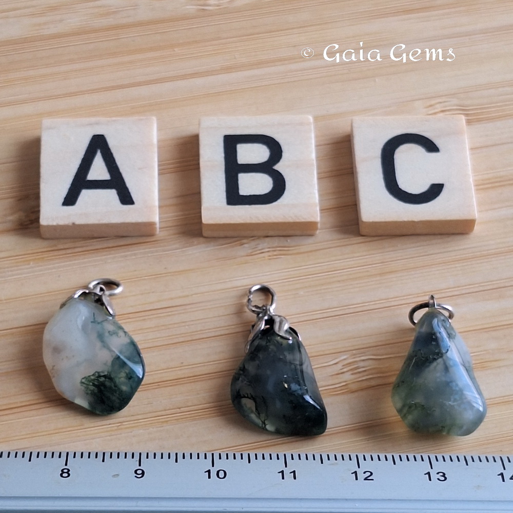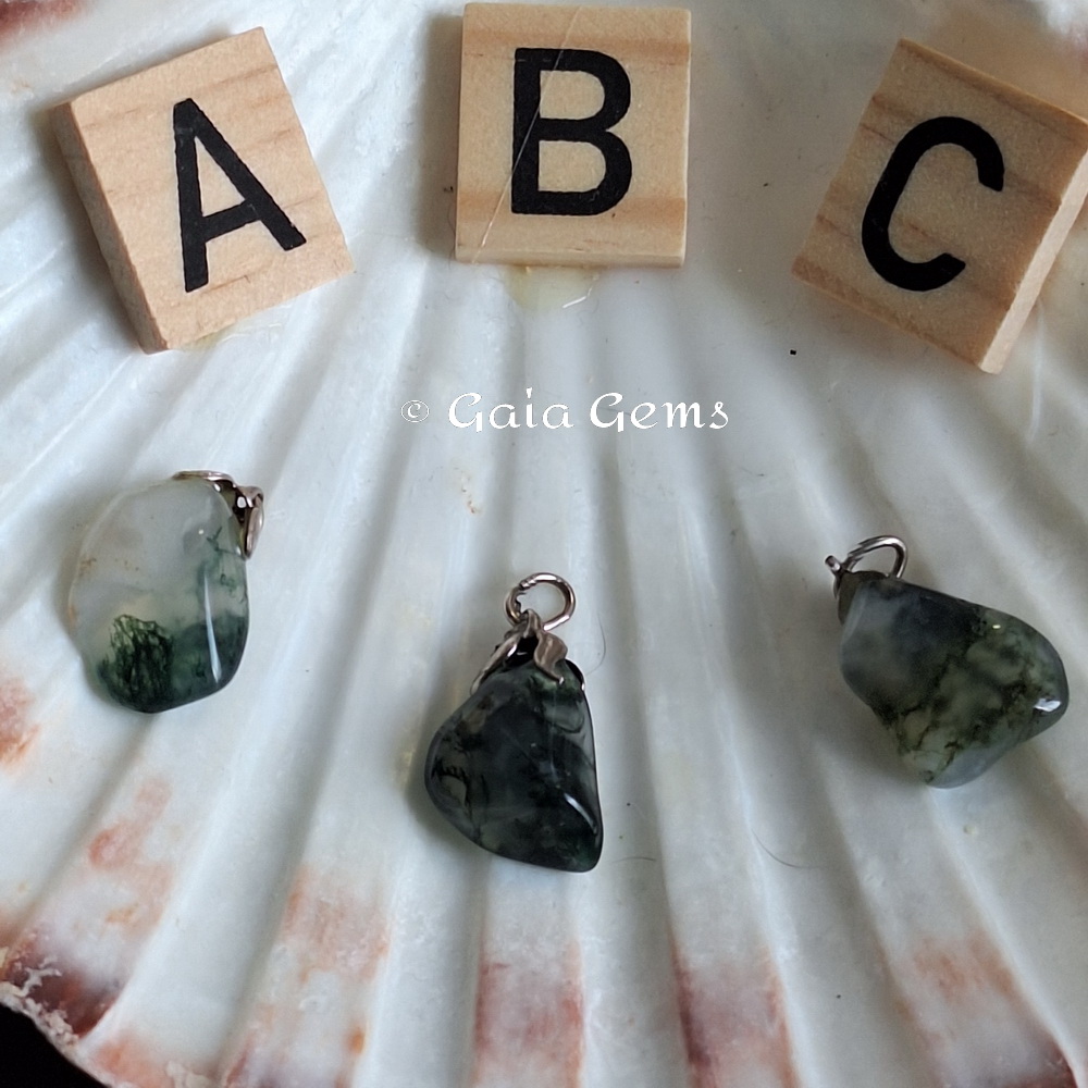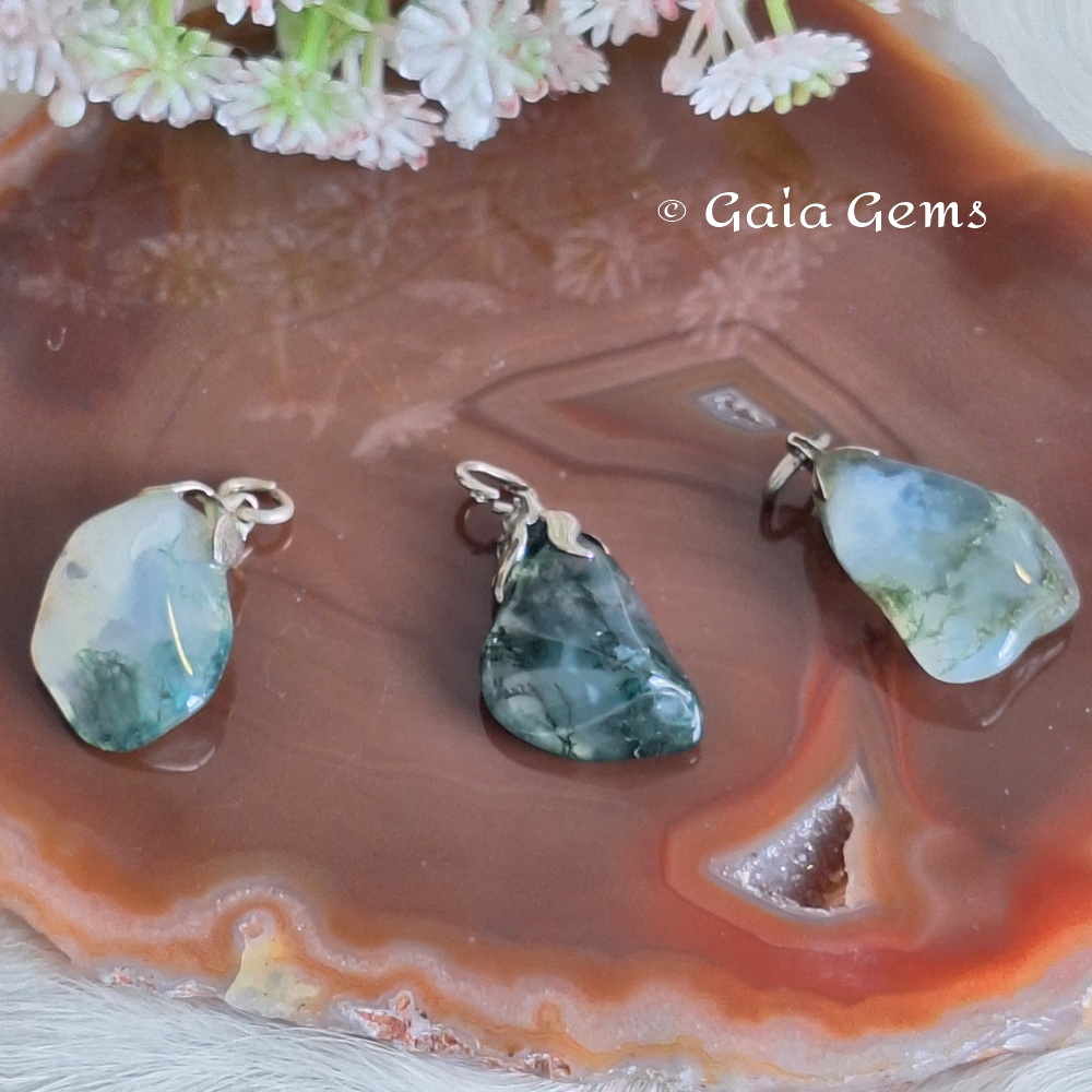 Mosagaat edelsteen hangertjes. De zilverkleurige onderdelen zijn nikkelvrij.