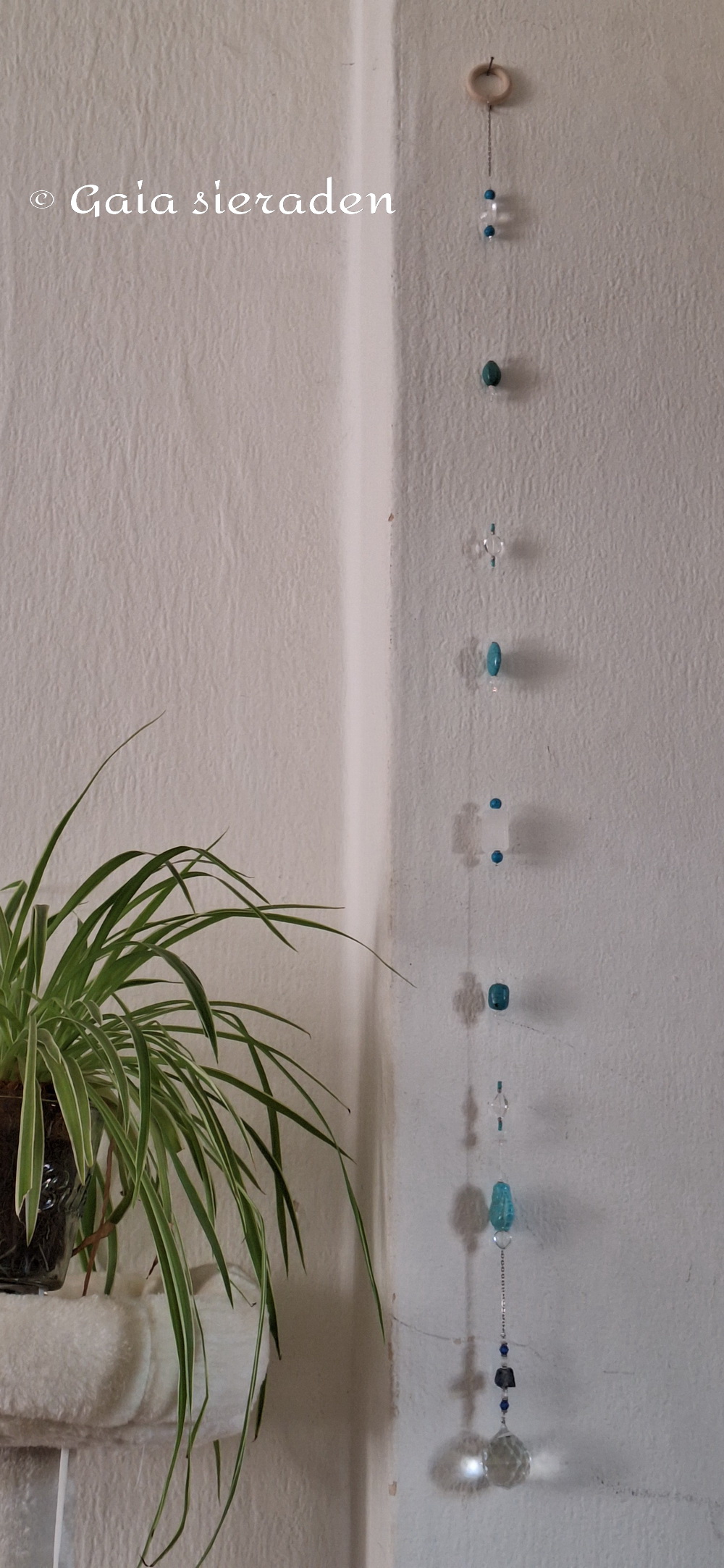 Raamhanger Turkoois en Lapis. (Deze Turkoois is geverfde Howliet.)