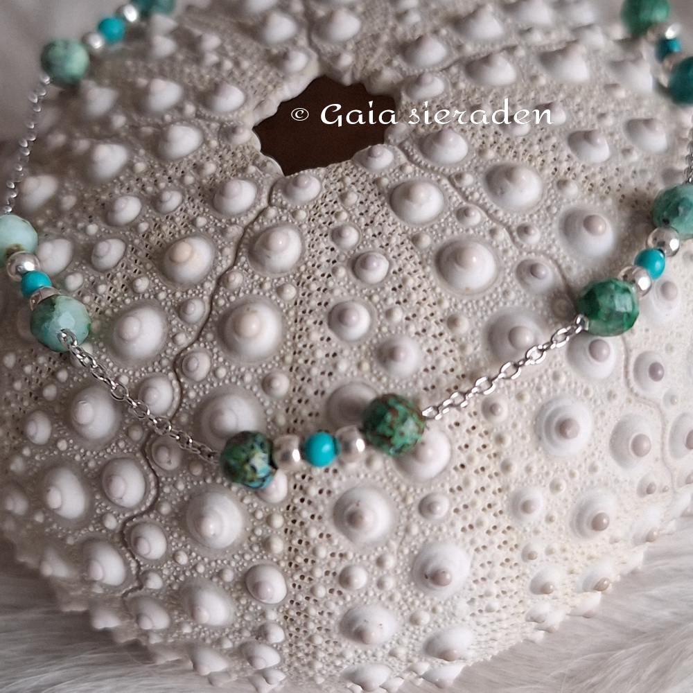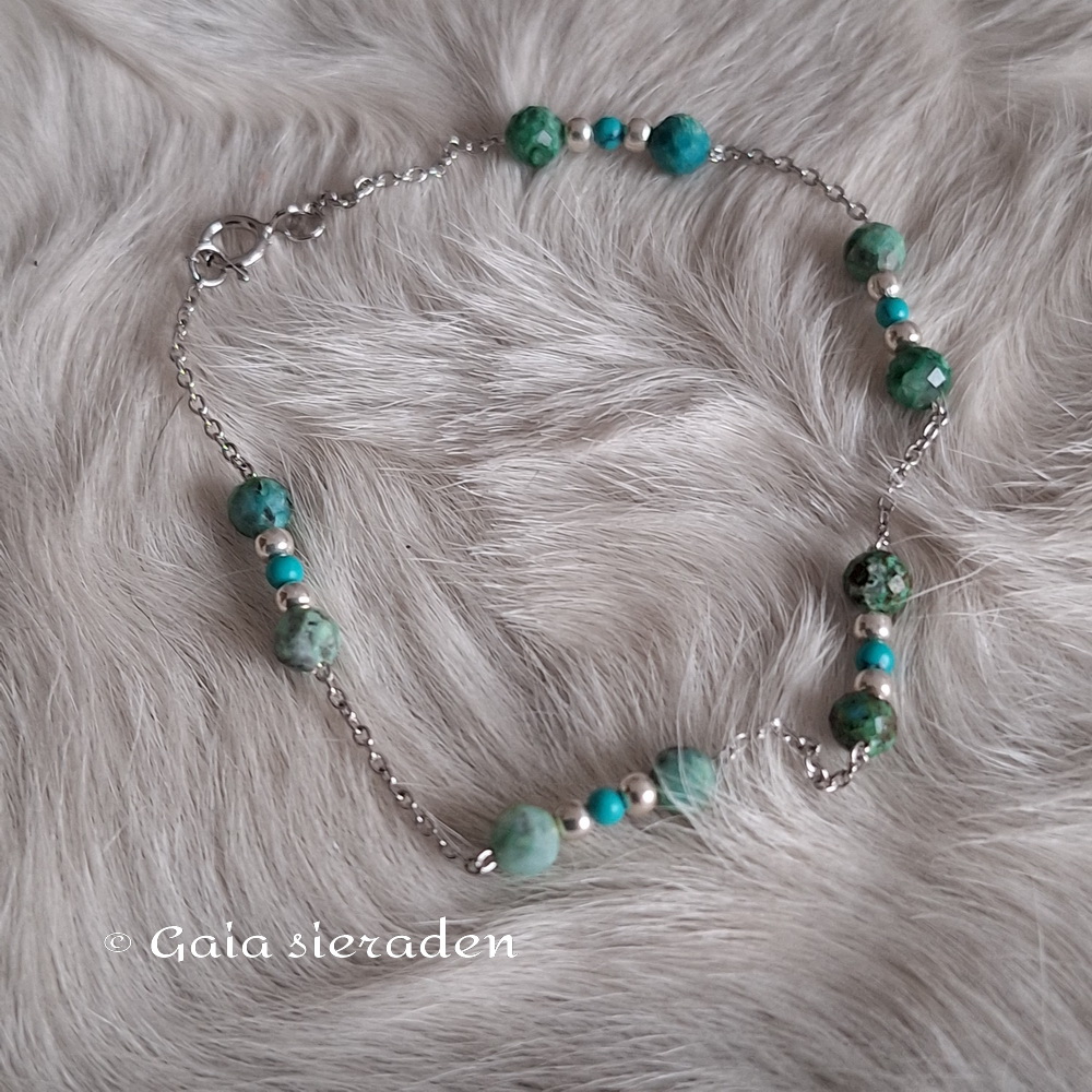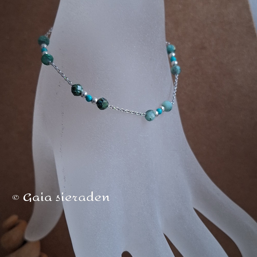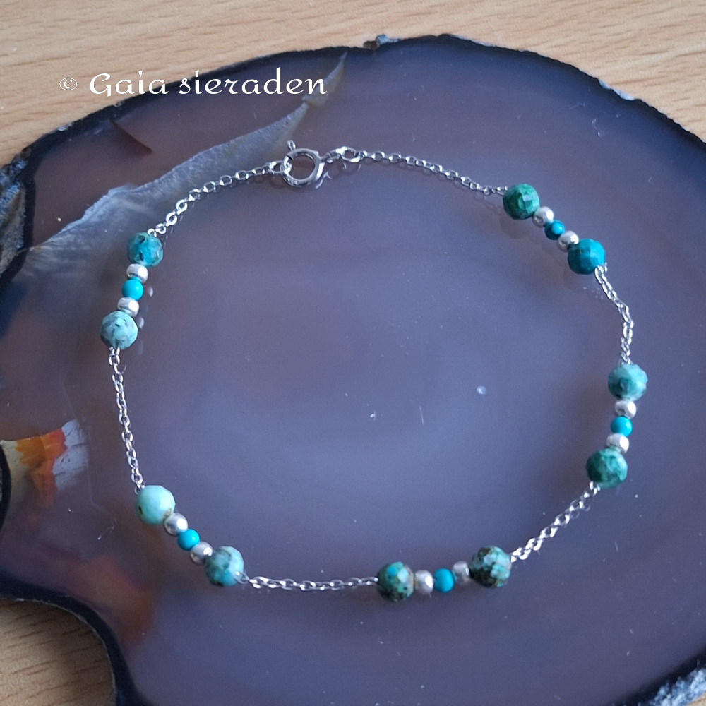 Turkoois zilveren armbandje: Sierlijke zilveren armandje met natuurlijke gefacetteerde Turkoois kraaltjes.