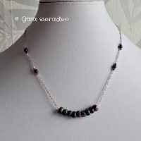 Zilveren ketting Robijn in Zoïsiet: zilveren ketting met middenstuk van gefacetteerde Robijn in Zoïsiet rondellen geregen op zilverdraad. In de ketting zijn ook kleine Robijn kraaltjes geketteld.